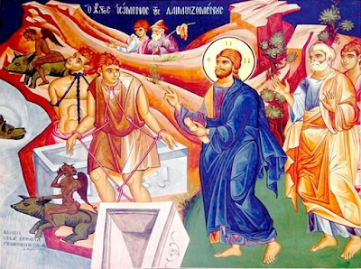 Therefore, demons always act through the thoughts, desires and passions, but sometimes they also take over the human brain and thus the person becomes completely demonized. Then the man does not speak, but the devil himself speaks for him. We see this in the incident described in today's Gospel reading. As soon as Christ approached the possessed man, the demons spoke and at the same time they begged Christ to allow them to enter the pigs and not to order them to be led to the abyss.