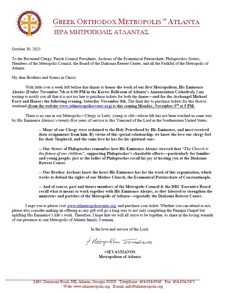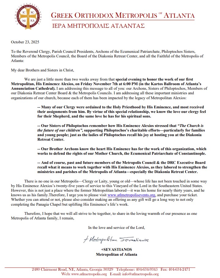 Dear Brother Archons and friends of the Archons of the Ecumenical Patriarchate,