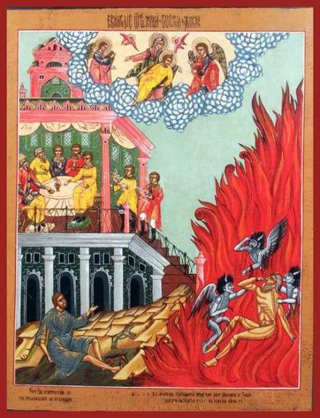 The Rich Man and poor Lazarus died. Death is separation of the soul from the body. This state is also called sleep, because death was overcome by the Resurrection of Christ. Christ overcame death ontologically by His Passion, His Cross and His Resurrection, and He gave man the possibility of transcending it by living in the Church. The fact that death is a sleep, a temporary state, appears from the way in which saints die, for they all have hope in Christ, and it can be seen in their uncorrupted and wonderworking relics.